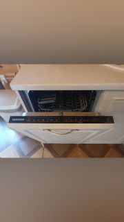 Кухня со всей бытовой техникой (чайник,микроволновка,кофемашина, посудомойка) и камином