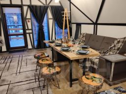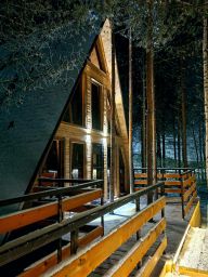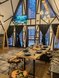 2. Аппартаменты: Два новейших А-Frame-Коттеджа с авторской мебелью ручной работы.