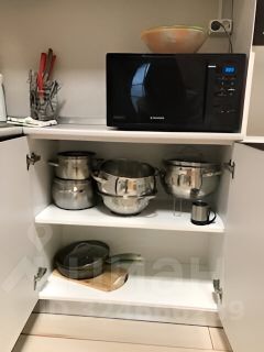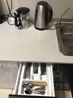 - кухонным уголком, оборудованным бытовой техникой (плитой, холодильником, посудомоечной машиной, микроволновой печью, чайником, кофеваркой, кухонными принадлежности, посудой),