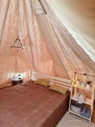 Глэмпинг находится вдали от цивилизации, среди нетронутой природы. Мы сохраняем максимальную близость к природе и аутентичность: не пользуемся шумными генераторами, все лампы и гирлянды в общих зонах на батарейках, налобные фонарики. Вай-фая нет, поэтому никакого информационного шума. Мобильная связь не стабильная, но позвонить можно.
