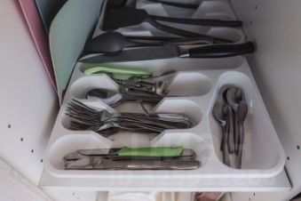 Кухня оборудована варочной панелью, микроволновой печью, посудомоечной машиной, кофеваркой, тостером, чайником и холодильником. Также есть полный комплект посуды и кухонных принадлежностей.