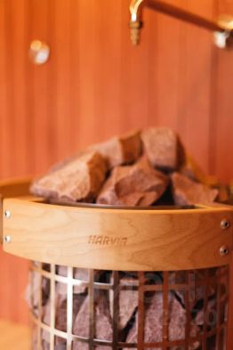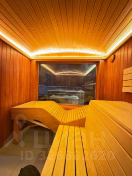 Всего несколько шагов — и вы окажетесь в уютной сауне с деревянным шезлонгом, откуда через панорамное окно открывается вид на джакузи. Этот продуманный цикл отдыха позволит вам полностью снять напряжение и восполнить запас энергии.