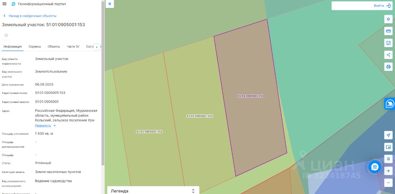 Земельный участок с кадастровым номером 51:01:0905001:153 площадь 1500 по адресу Российская Федерация, Мурманская область, муниципальный район Кольский, сельское поселение Ура-Губа, село Ура-Губа