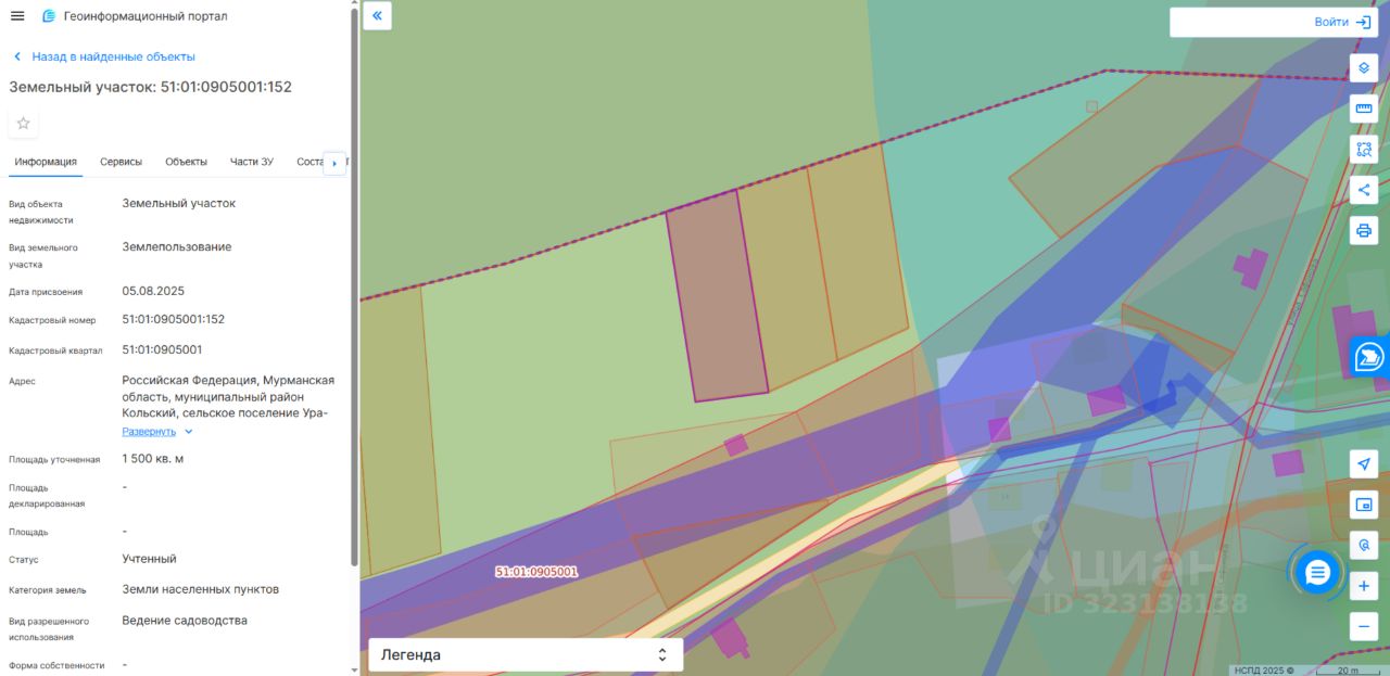 Земельный участок с кадастровым номером 51:01:0905001:152, площадь 1500, по адресу Российская Федерация, Мурманская область, муниципальный район Кольский, сельское поселение Ура-Губа, село Ура-Губа