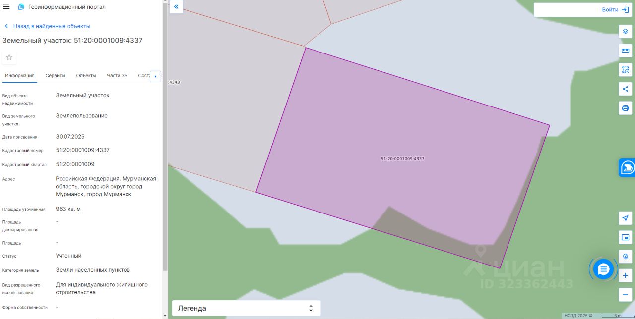 Земельный участок с кадастровым номером 51:20:0001009:4337 площадь 963 по адресу Российская Федерация, Мурманская область, городской округ город Мурманск, город Мурманск