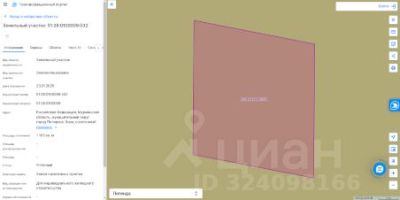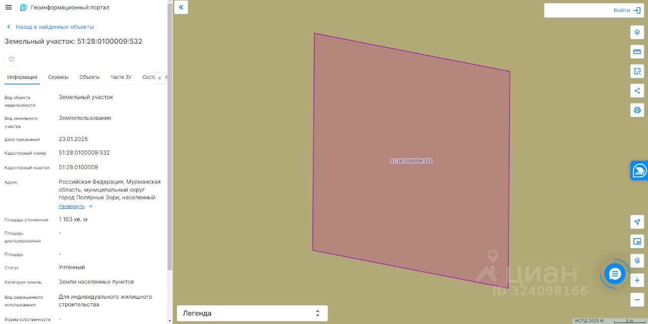 Земельный участок с кадастровым номером 51:28:0100009:532 площадь 1163 по адресу Российская Федерация, Мурманская область, муниципальный округ город Полярные Зори, населенный пункт Зашеек