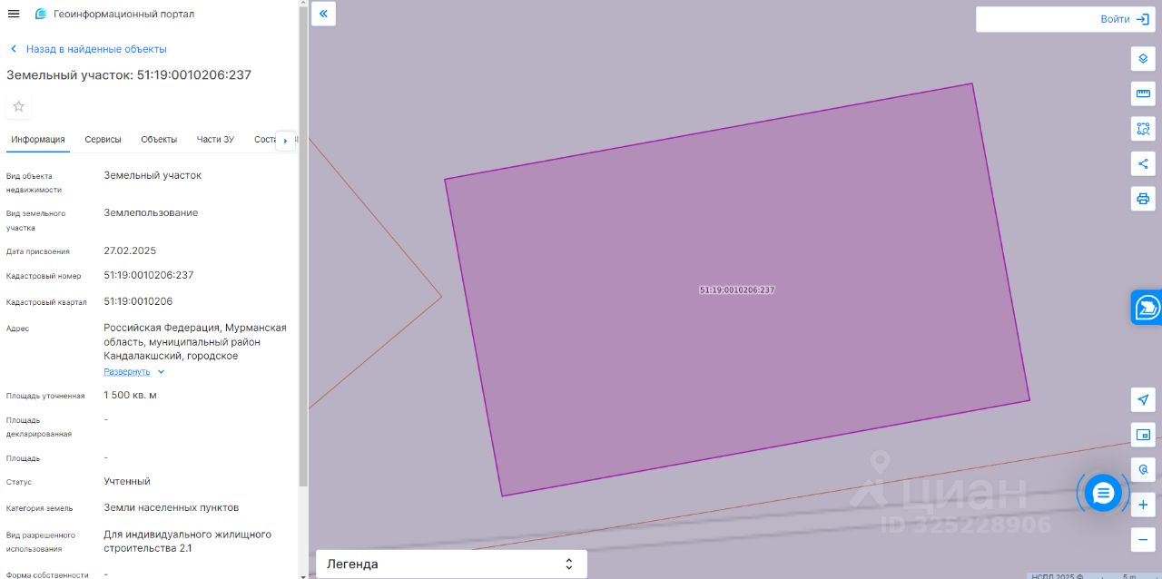 Земельный участок с кадастровым номером 51:19:0010206:237 площадь 1500 по адресу Российская Федерация, Мурманская область, муниципальный район Кандалакшский, городское поселение Кандалакша, село Лувеньга