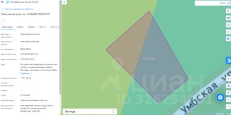 Земельный участок с кадастровым номером 51:04:0010202:221 площадь 1227 по адресу Российская Федерация, Мурманская область, муниципальный район Терский, городское поселение Умба, поселок городского типа Умба
