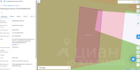 Земельный участок с кадастровым номером 51:28:0100009:544 площадь 1500 по адресу Российская Федерация, Мурманская область, муниципальный округ город Полярные Зори с подведомственной территорией, населенный пункт Зашеек