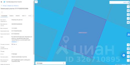 Земельный участок с кадастровым номером 51:17:0020103:809 площадь 982 по адресу Российская Федерация, Мурманская область, муниципальный округ город Кировск, населенный пункт Титан