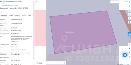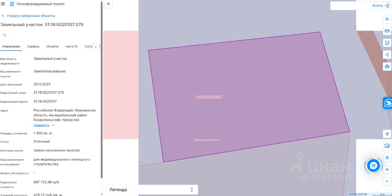 Земельный участок с кадастровым номером 51:18:0020107:379 площадь 1459 по адресу Российская Федерация, Мурманская область, муниципальный район Кандалакшский, городское поселение Кандалакша, город Кандалакша