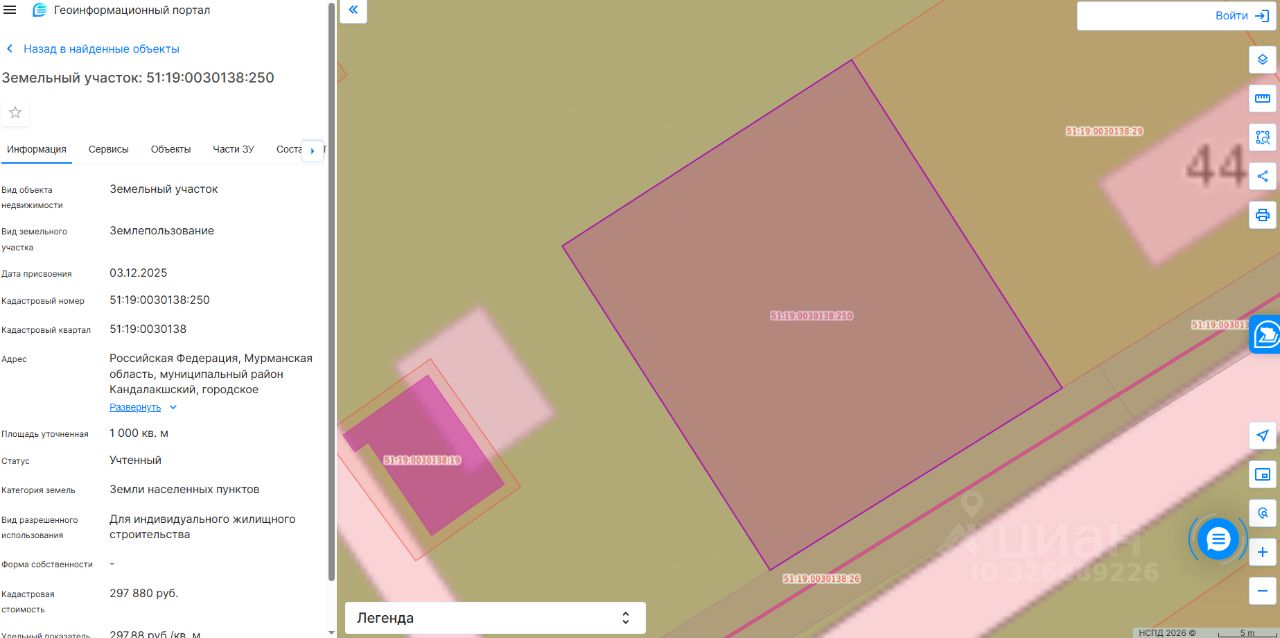 Земельный участок с кадастровым номером 51:19:0030138:250 площадь 1000 по адресу Российская Федерация, Мурманская область, муниципальный район Кандалакшский, городское поселение Зеленоборский, поселок городского типа Зеленоборский, улица Магистральная