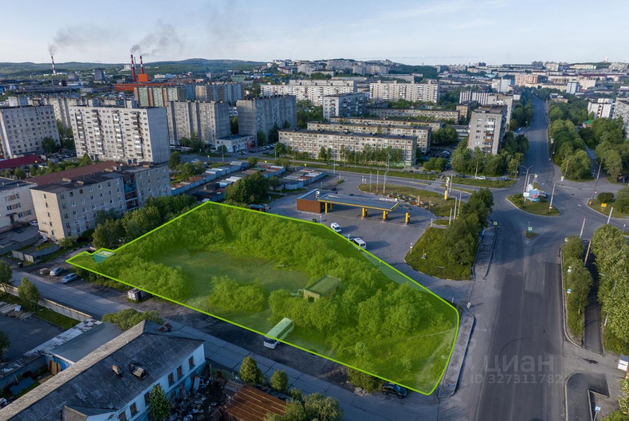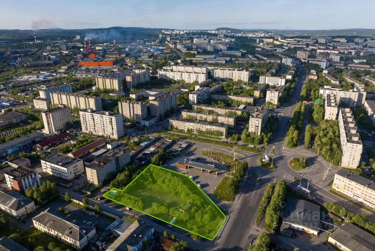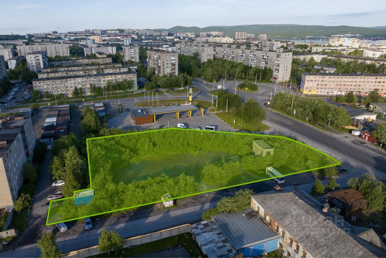 Земельный участок в северной половине г. Мурманска. Окружение представлено жилой и коммерческой среднеэтажной застройкой. Хорошая визуальная и траснпортная доступность, остановка общественного транспорта в 300 м. Удобный выезд на городские магистрали, в том числе проспект Героев-Североморцев.