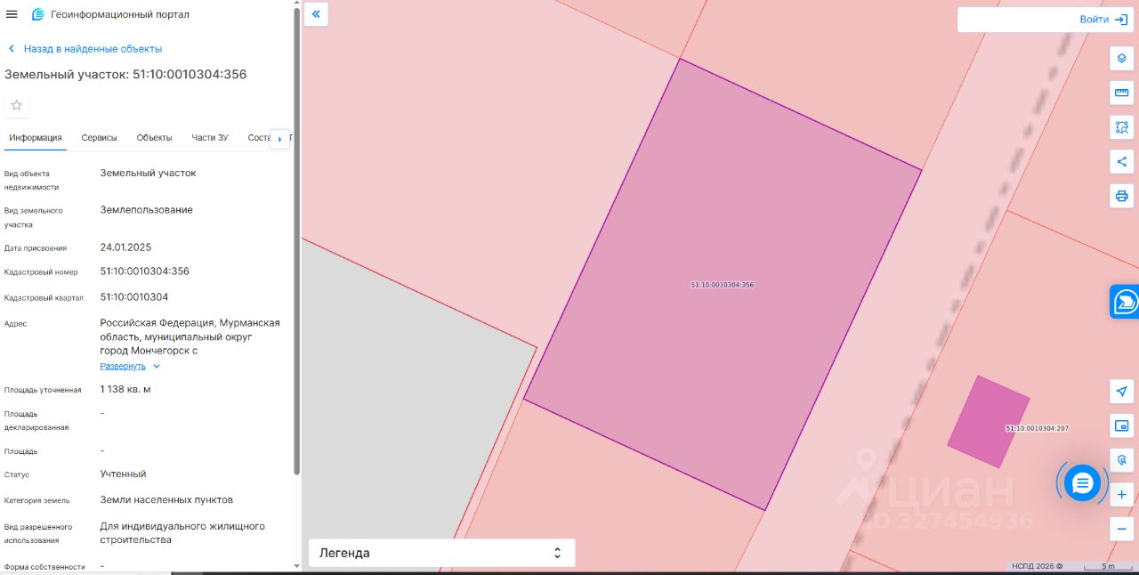Земельный участок с кадастровым номером 51:10:0010304:356 площадь 1138 по адресу Российская Федерация, Мурманская область, муниципальный округ город Мончегорск с подведомственной территорией, город Мончегорск, улица Привокзальная