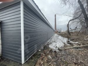 6) по всему периметру здание обшито серым сайдингом;