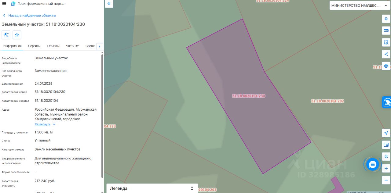 Земельный участок с кадастровым номером 51:18:0020104:230 площадь 1500 по адресу Российская Федерация, Мурманская область, муниципальный район Кандалакшский, городское поселение Кандалакша, город Кандалакша