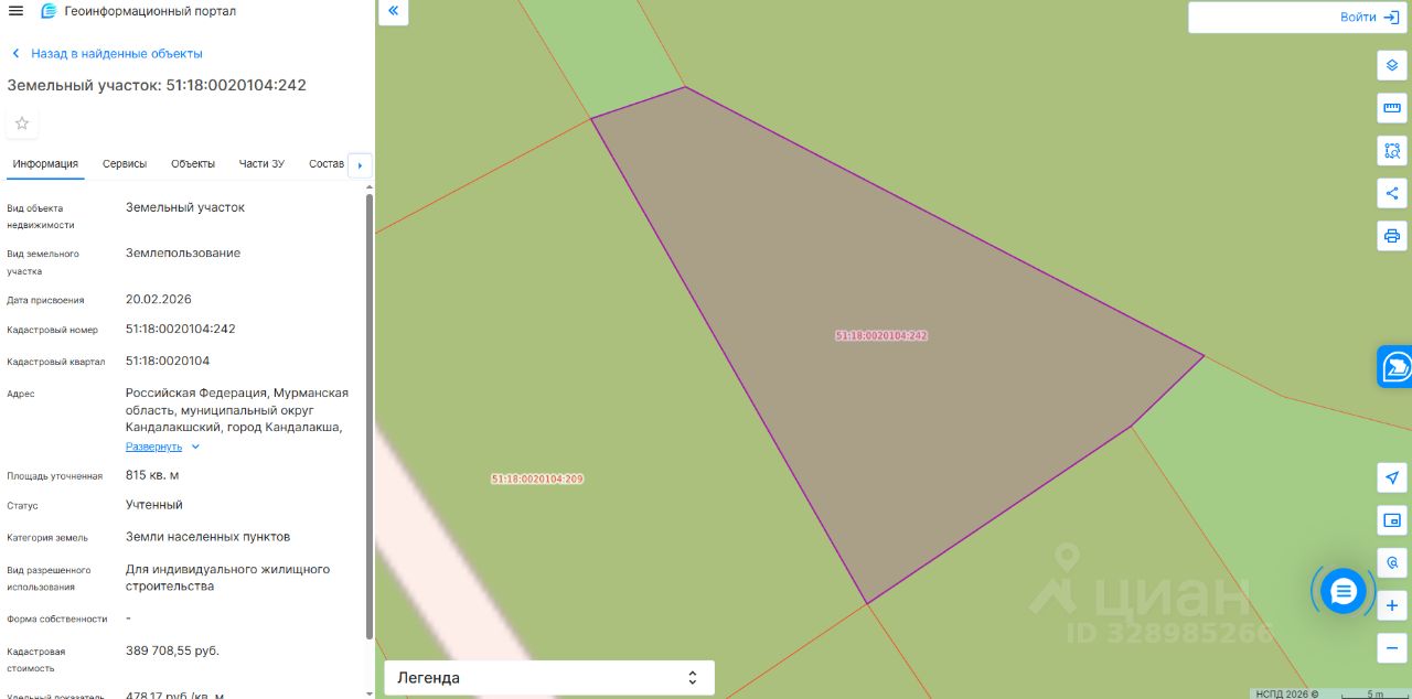 Земельный участок с кадастровым номером 51:18:0020104:242 площадь 815 по адресу Российская Федерация, Мурманская область, муниципальный округ Кандалакшский, город Кандалакша, улица Шпальная, земельный участок 30А