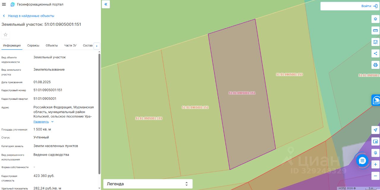 Земельный участок с кадастровым номером 51:01:0905001:151 площадь 1500 по адресу Российская Федерация, Мурманская область, муниципальный район Кольский, сельское поселение Ура-Губа, село Ура-Губа