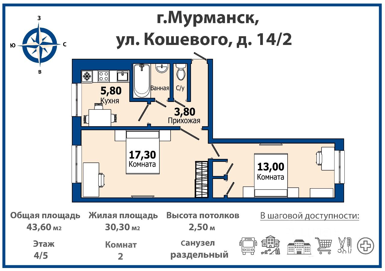 гимназия 7, детский сад 45, музыкальная школа, поликлиника, продуктовые магазины, ТЦ Елан, остановки общественного транспорта, зоны отдыха и прогулок.