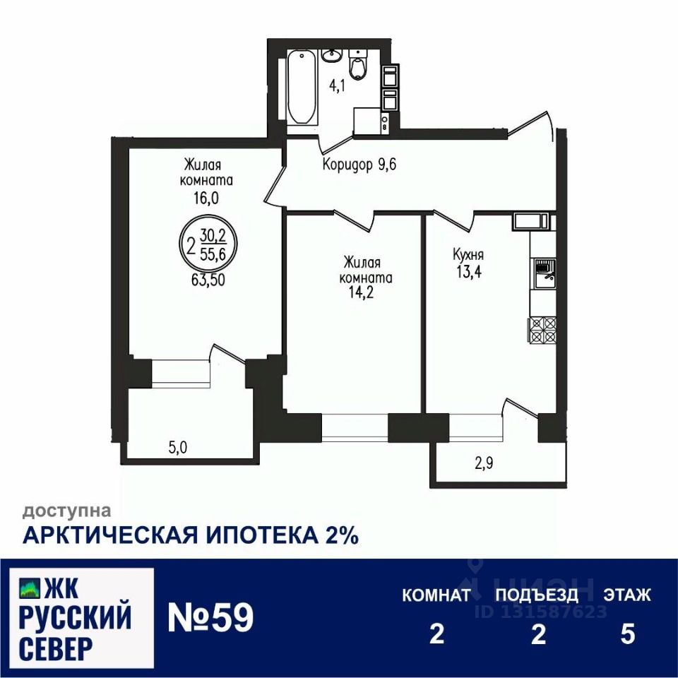 Квартира двухкомнатная 59 Уникальное предложение для жителей города и области!