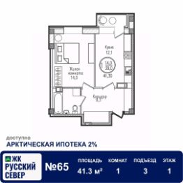 Площадь общая: 41.3м²