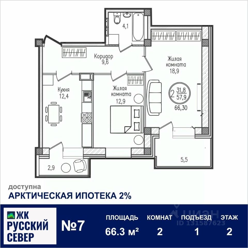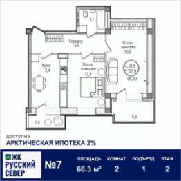 Площадь общая: 66.3м²