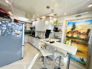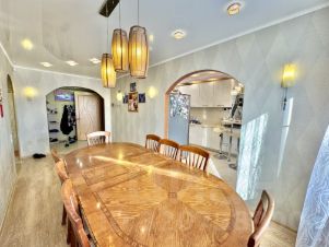* В квартире обновленный ремонт 2024 года (новый ламинат, натяжные потолки с подсветкой, освещение, новые шкафы, столы), а также новая встроенная кухня с техникой (новые 6-ти зонная электрическая варочная поверхность, встроенная вытяжка, большая посудомоечная машина, красивое скинали (стеклянный фартук для кухни), новый натяжной потолок с подсветкой, шторы), полная замена всех фасадов с механизмами Blum).
