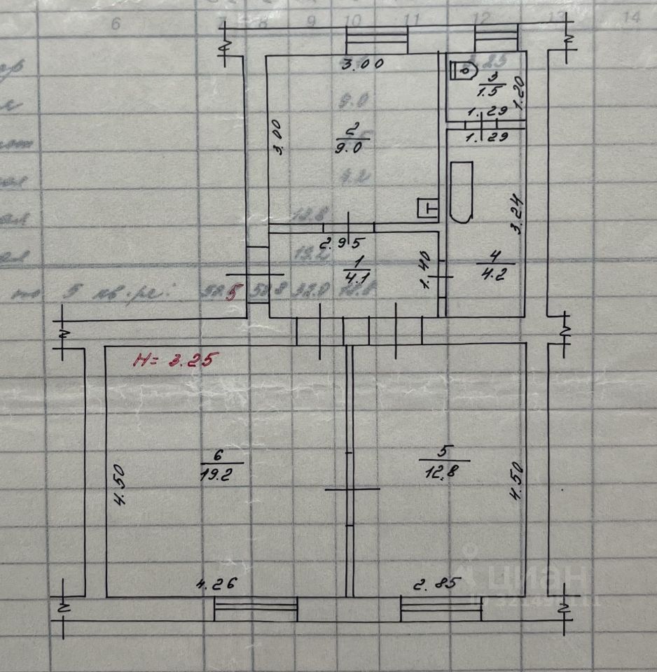 Жилая площадь: 32 м² (комнаты 12,8 м² и 19,2 м²)