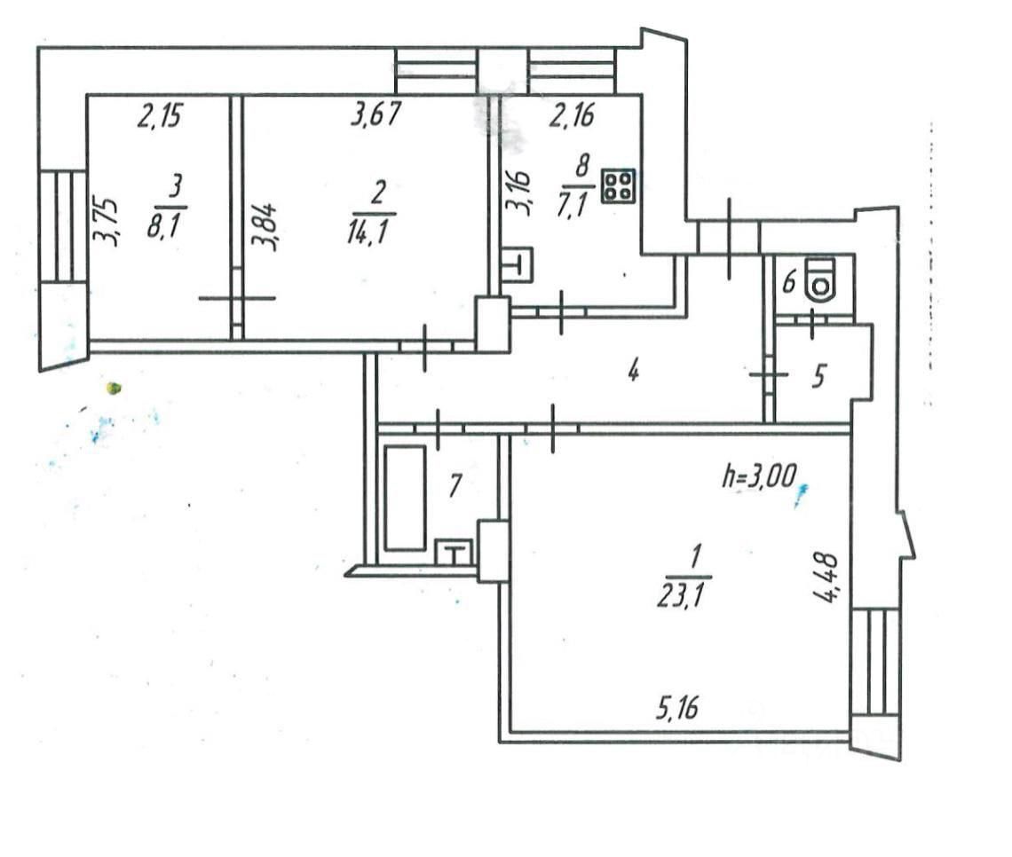 Продается уютная трехкомнатная квартира в центре Мурманска по адресу: проспект Ленина, 63. Общая площадь — 69,2 кв. м, жилая — 45,3 кв. м, кухня — 7,1 кв. м. Квартира расположена на 5-м этаже пятиэтажного дома 1935 года постройки. Высота потолков составляет 3 метра, что добавляет пространству воздуха и света.