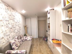 Делали все и для себя. Полный капитальный ремонт с заменой электропроводки, окон, дверей, выравнивали стены, полы в один уровень по всей квартире, выполнено остекление балкона и лоджии. Косметический ремонт выдержан в едином стиле, в спокойной теплой цветовой гамме. Санузел сделан под ключ, кафель на полу и на стенах, подогрев пола, замена сантехники, сантехнического оборудования, стояков, установлен водонагреватель, счетчики на ХВС и ГВС; в кухне кафель на полу, подогрев пола, есть встроенная мебель и техника.