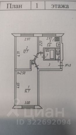 Жилая площадь составляет 27.4 квадратных метров. Кухня площадью 6 квадратных метров. Санузел раздельный.