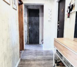 Сама квартира готова к проживанию, на окнах - отличные деревянные Евротииви, лоджия остеклена пластиковыми стеклопакетами, межкомнатные и входная двери заменены, на полу ламинат и линолеум, санузел раздельный, в ванной кафель. Есть мелкие недочеты в виде обоев в прихожей и дверной ручки в ванной, но это компенсируется более чем адекватной ценой.