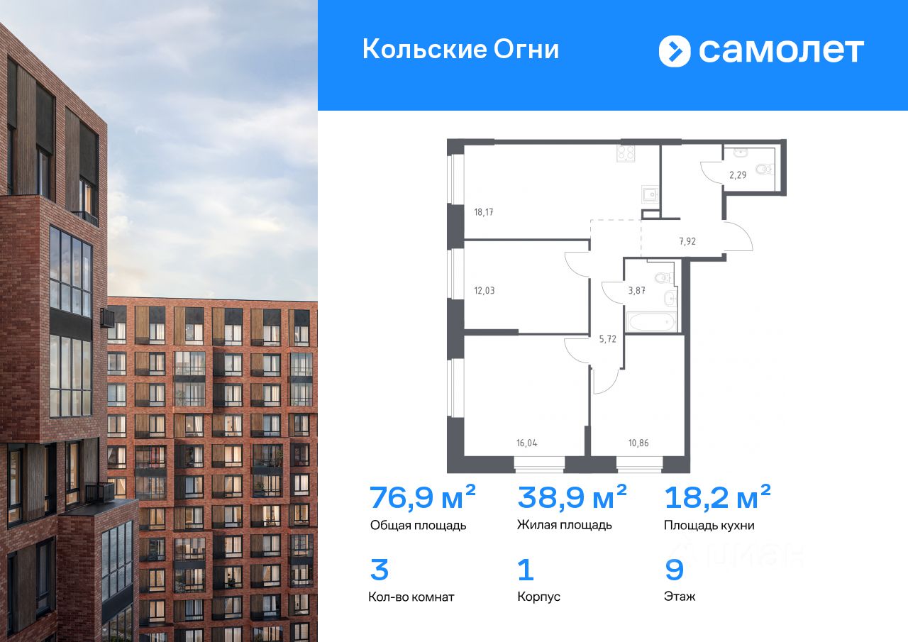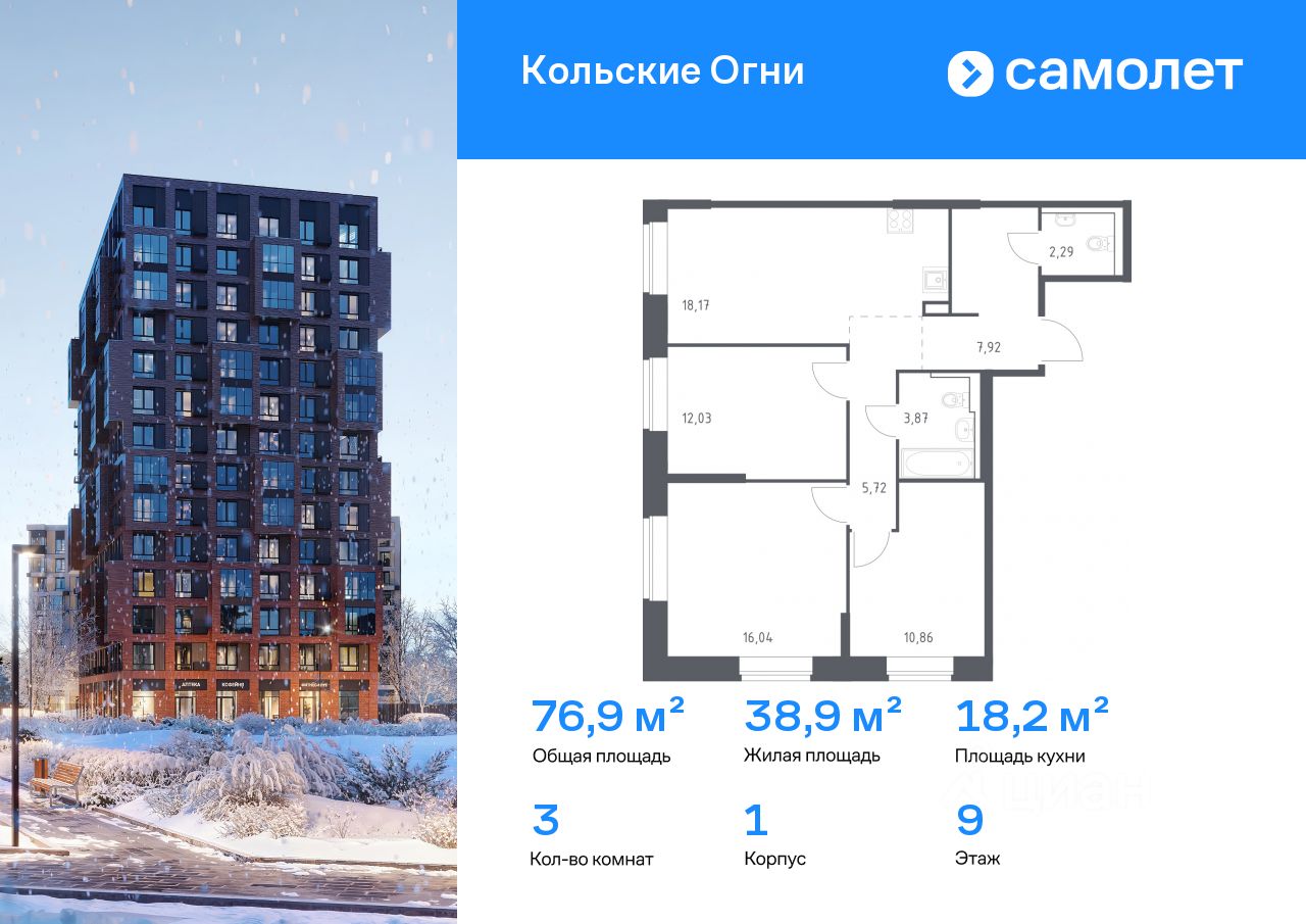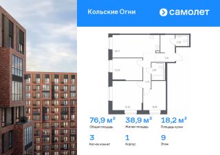 Строим кварталы для жизни с заботой о будущем. Предлагается 3-комнатная квартира комфорт-класса 76,9 кв.м в корпусе 1 на 9 этаже, в ЖК "Кольские Огни"