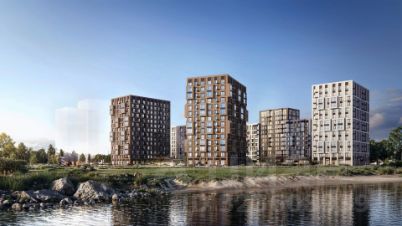 Корпуса высотой 912 этажей и 1417-этажные башни украшают деревянные панели. На входе в подъезды не будет ступеней и высоких порогов. После прогулки велосипеды и коляски можно оставить в местах хранения.