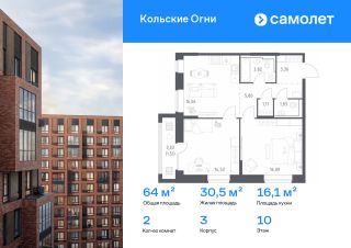 Строим кварталы для жизни с заботой о будущем. Предлагается 2-комнатная квартира комфорт-класса 64,01 кв.м в корпусе 3 на 10 этаже, в ЖК "Кольские Огни"
