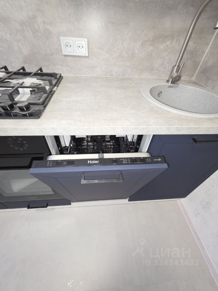 Встроенный кухонный гарнитур, посудомоечная машинка, духовой шкаф, газовая варочная панель.