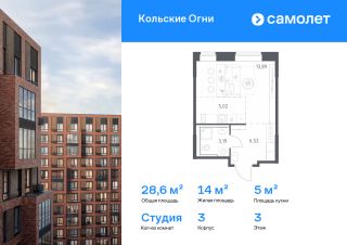Строим кварталы для жизни с заботой о будущем. Предлагается квартира студия комфорт-класса 28,62 кв.м в корпусе 3 на 3 этаже, в ЖК "Кольские Огни"