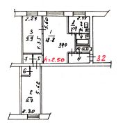 Продается трехкомнатная квартира площадью 55,4 кв. м, расположенная на 3-м этаже 5-этажного кирпичного дома. Жилая площадь составляет 40,4 кв. м, кухня — 6 кв. м, высота потолков — 2,5 метра. Окна выходят как на улицу, так и во двор, что обеспечивает хорошую освещенность и тишину.