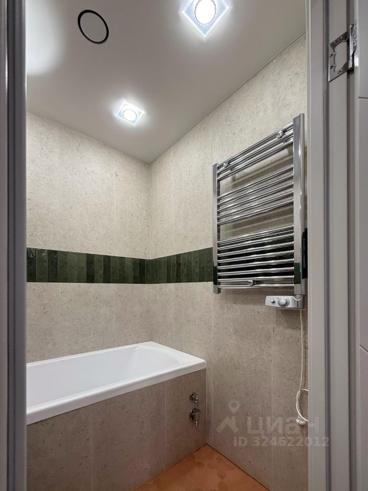 Стены в санузле облицованы керамогранитом, принудительная вентиляция, теплый пол, электрический полотенцесушитель, сделаны выводы сантехники для стиральной машины.
