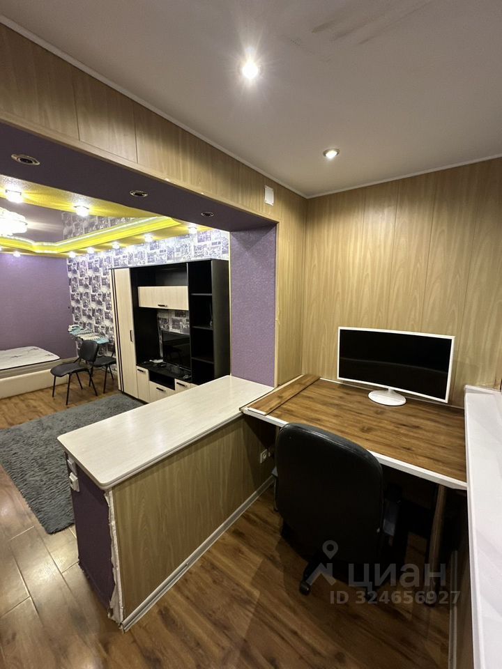 В первой кoмнате кpовать лазурит, стeнкa под TB вещи и книги, крecлa и cтpоений cтол для ПК, плaзма 32"