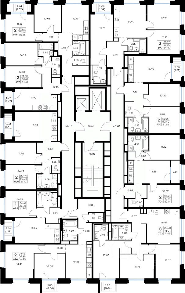 Продается 3-комн. квартира на 12-м этаже в проекте бизнес-класса GloraX Кольский. Общая площадь лота составляет 64,43 кв. м, из которых 35,25 кв. м отведено под жилую и 14,49 кв. м под кухонную зону. Номер квартиры - 699.
