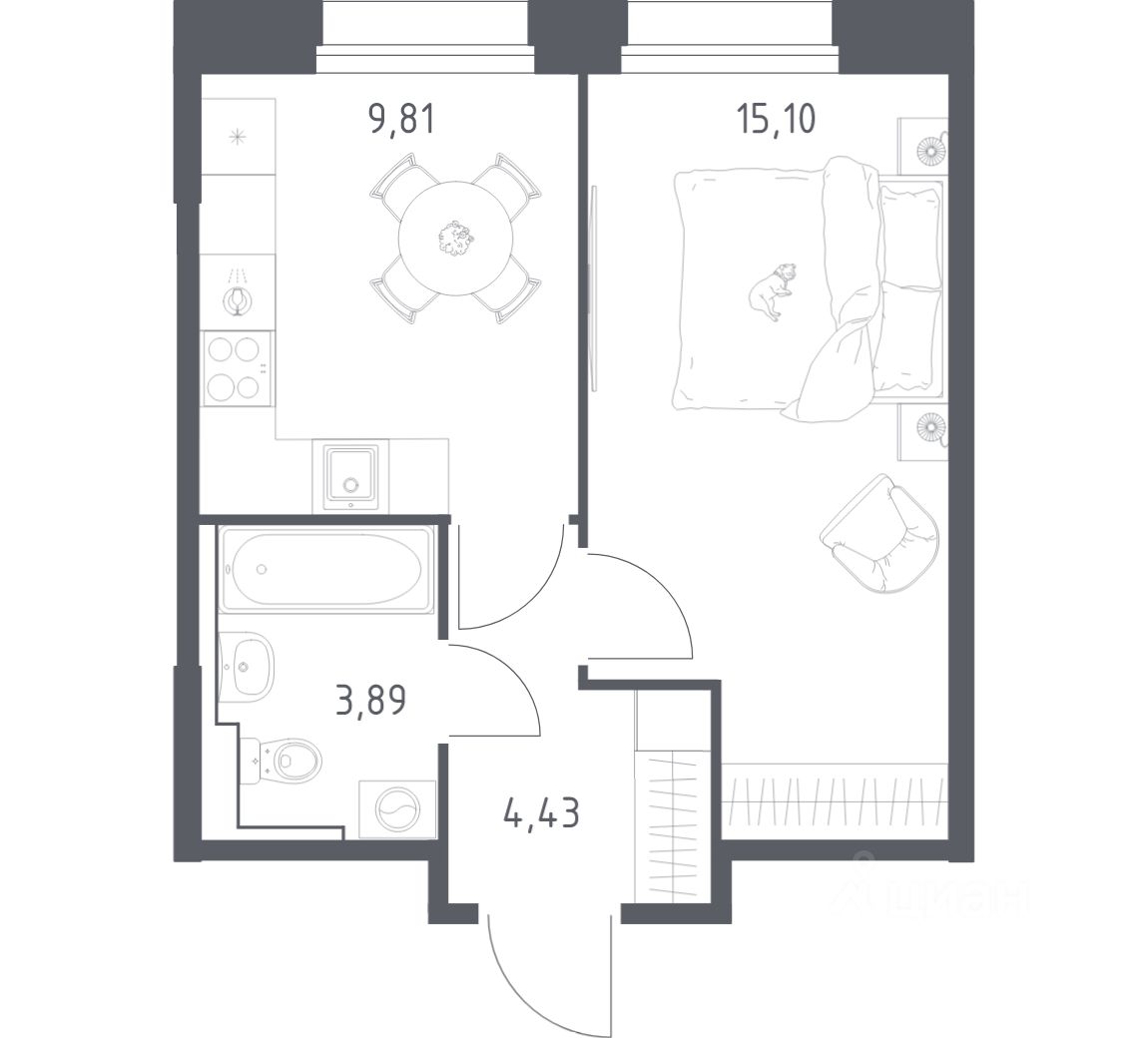 Квартиры без отделки. Доступность опции "отделка" и возможность комплектации мебелью и декором уточняйте у застройщика.