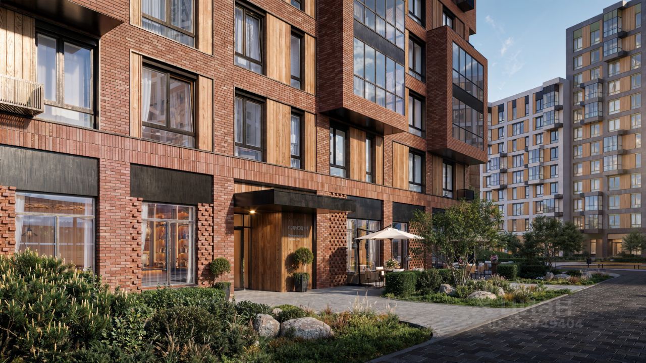 Корпуса высотой 912 этажей и 1417-этажные башни украшают деревянные панели. На входе в подъезды не будет ступеней и высоких порогов. После прогулки велосипеды и коляски можно оставить в местах хранения.