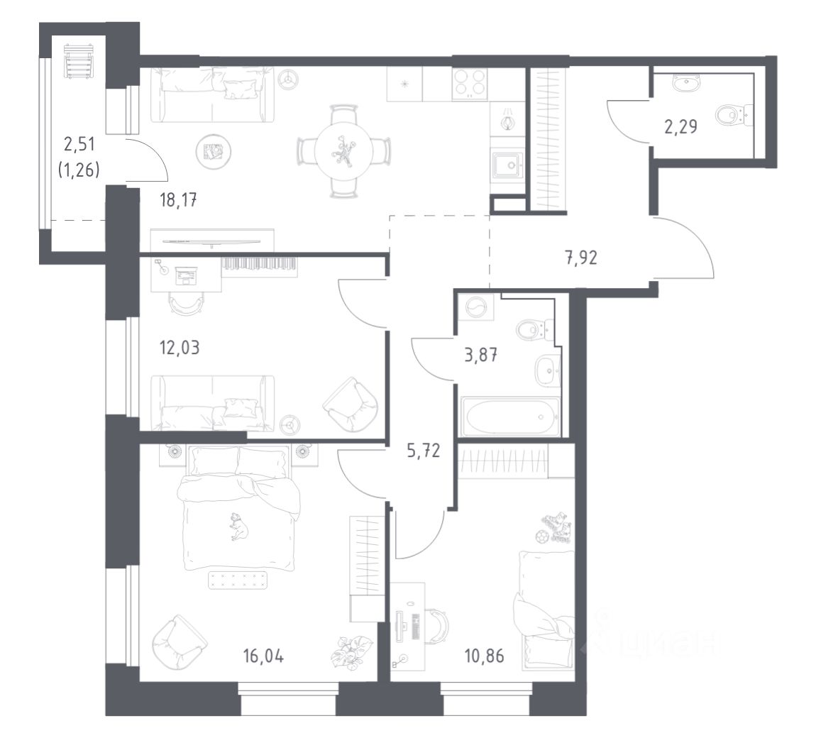 Строим кварталы для жизни с заботой о будущем. Предлагается 3-комнатная квартира комфорт-класса площадью 78.16 кв.м в корпусе 1КВ на 12-м этаже, в жилом комплексе "Кольские Огни".