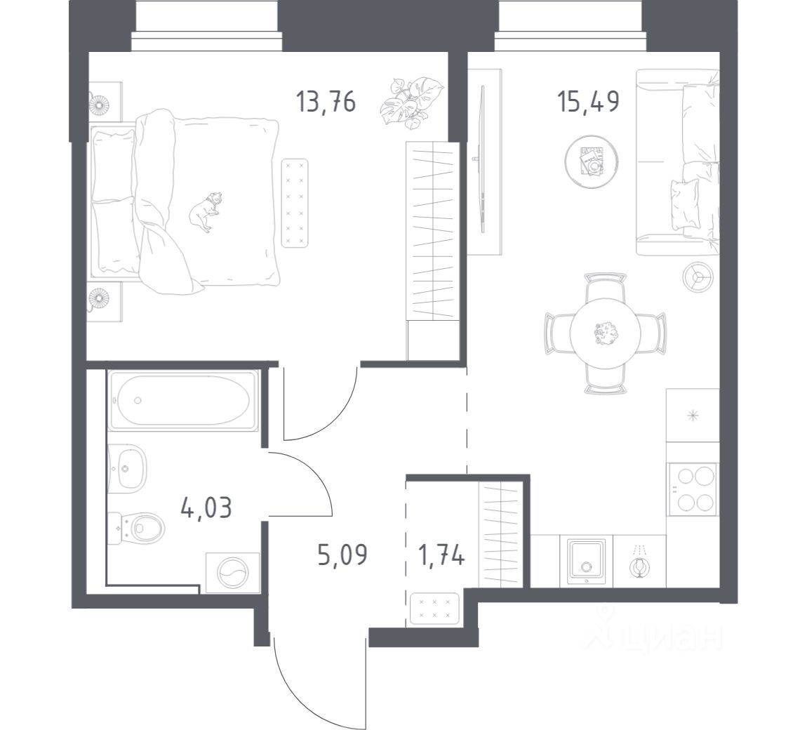Квартиры без отделки. Доступность опции "отделка" и возможность комплектации мебелью и декором уточняйте у застройщика.