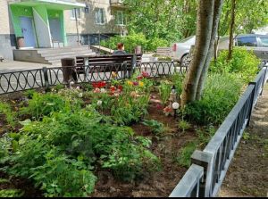 Дом находится в хорошем состоянии. Лучшее ТСЖ в районе, ухоженный, освещённый, недавно отремонтированный зелёный двор (летом в цветах), зимой чистится регулярно, парковка, детские площадки, достаточно места для выгула домашних питомцев (за домом сопка). Рядом строится спортивный комплекс с бассейном. Подъезд чистый, освещённый, после ремонта, заменен лифт и окна, есть мусоропровод, домофон. На подъездах стоят камеры видеонаблюдения.