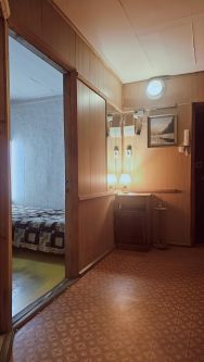 Нестандартная планировка: просторные изолированные комнаты, в спальне оборудовано место для вместительного встроенного шкафа, в зале два окна с видом во двор. Санузел совмещённый, просторный коридор с зоной для хранения верхней одежды.
