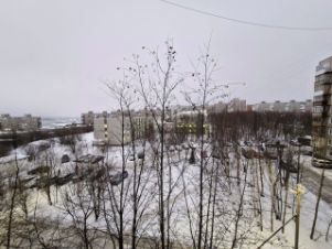 Из окон открывается вид на тихий двор, где расположена детская площадка, из другой комнаты вид на Кольский залив.