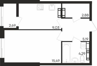 Общая площадь39,57 м²