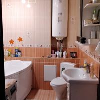 Санузел совмещен. Просторный. Красивый качественный ремонт.Ванная с джакузи.Полы с подогревом. Водонагреватель на 100 литров.